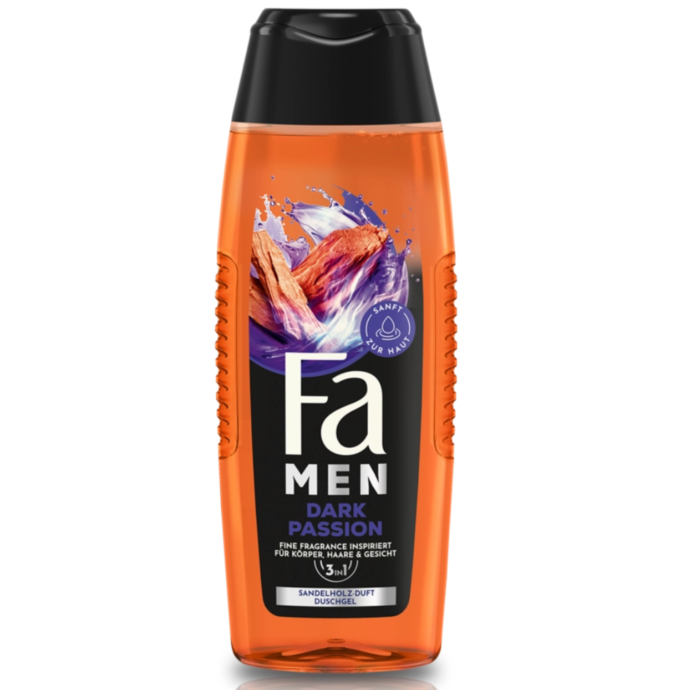Step into a world of intensity with Fa Men Dark Passion Shower Gel, a 3-in-1 vegan formula crafted to deliver a powerful yet gentle cleansing experience for body, hair and face. Its rich, fine-fragrance-inspired scent blends smooth sandalwood with warm cinnamon and aromatic nutmeg, creating a captivating aroma that lingers subtly on the skin. The formula cleans thoroughly while remaining kind to the skin, leaving you feeling refreshed, energized and wrapped in an unmistakably bold, masculine fragrance after every shower.