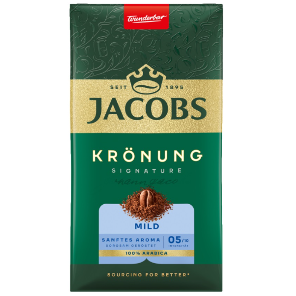 Carefully selected coffee beans from 100% Arabica highland coffee and a careful roasting process make JACOBS Krönung Mild a particularly mild taste experience. The light roast coffee is just right for lovers of smooth and fruity coffee. Enjoy the unmistakable, indulgent aroma of JACOBS coffee with every cup and awaken your dreams!